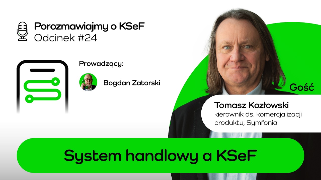 Tomasz Mamys i Bogdan Zatorski zapraszają na videocast Zielona Linia Symfonii „Porozmawiajmy o KseF”. W kolejnych odcinkach nasi eksperci zgłębiają temat Krajowego Systemu e-Faktur oraz zmian, jakie czekają przedsiębiorców w różnych branżach.